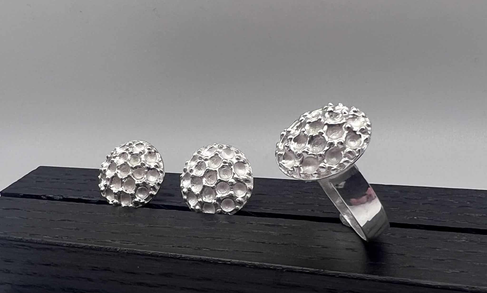 Hand sand cast Sterling Silver ring reflective of crustacean formation.