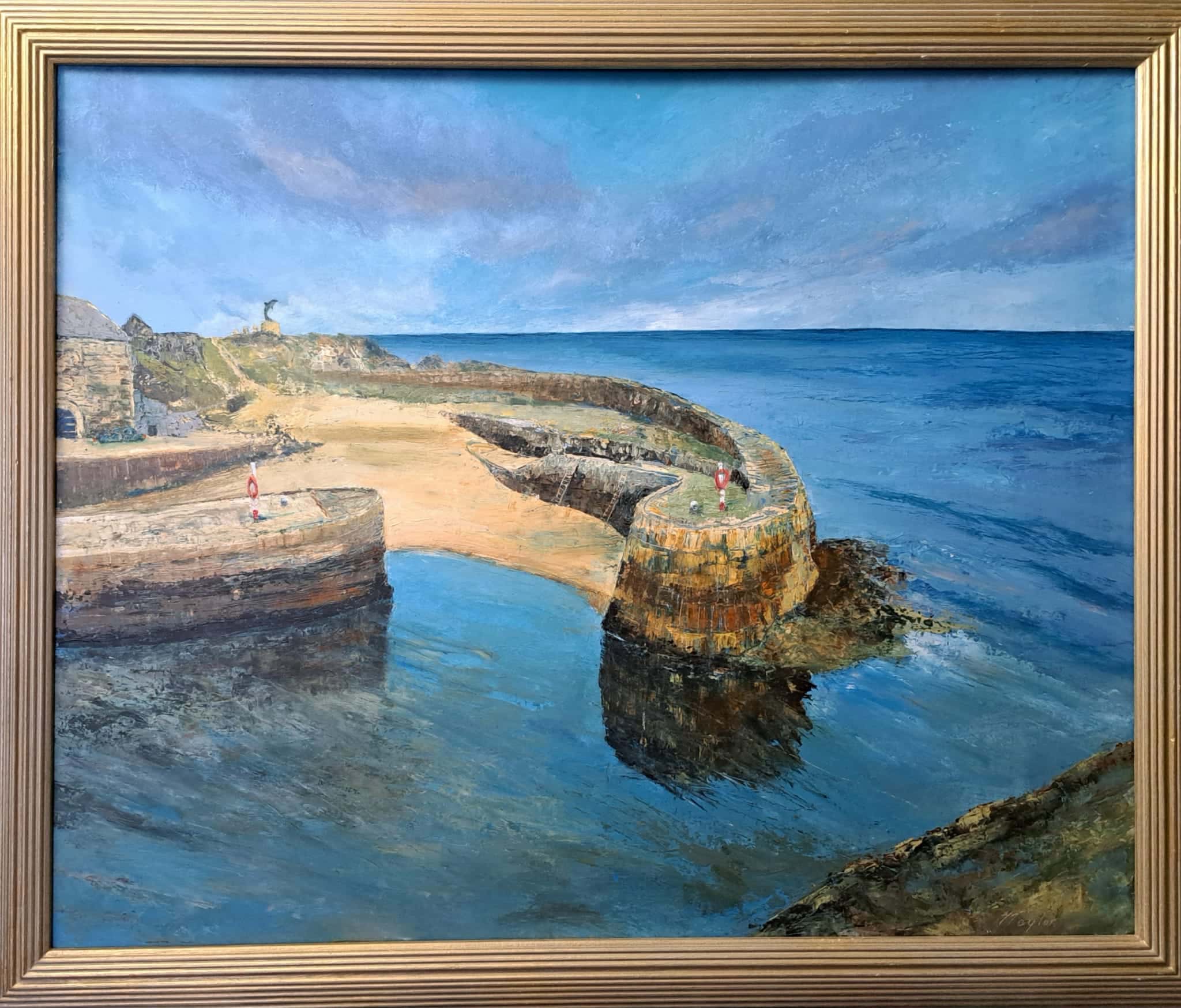 Portsoy harbour. I’ve always been fascinated by the stonework of the harbour and have painted this many times . My father’s family originally came from this area .